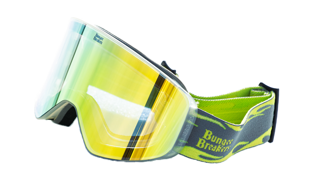 Lightweight and comfortable frame combined with a durable strap featuring the classic BB fire silhouette in acid green detailing. Designed for slushy park laps, backcountry missions, and clear visual performance.